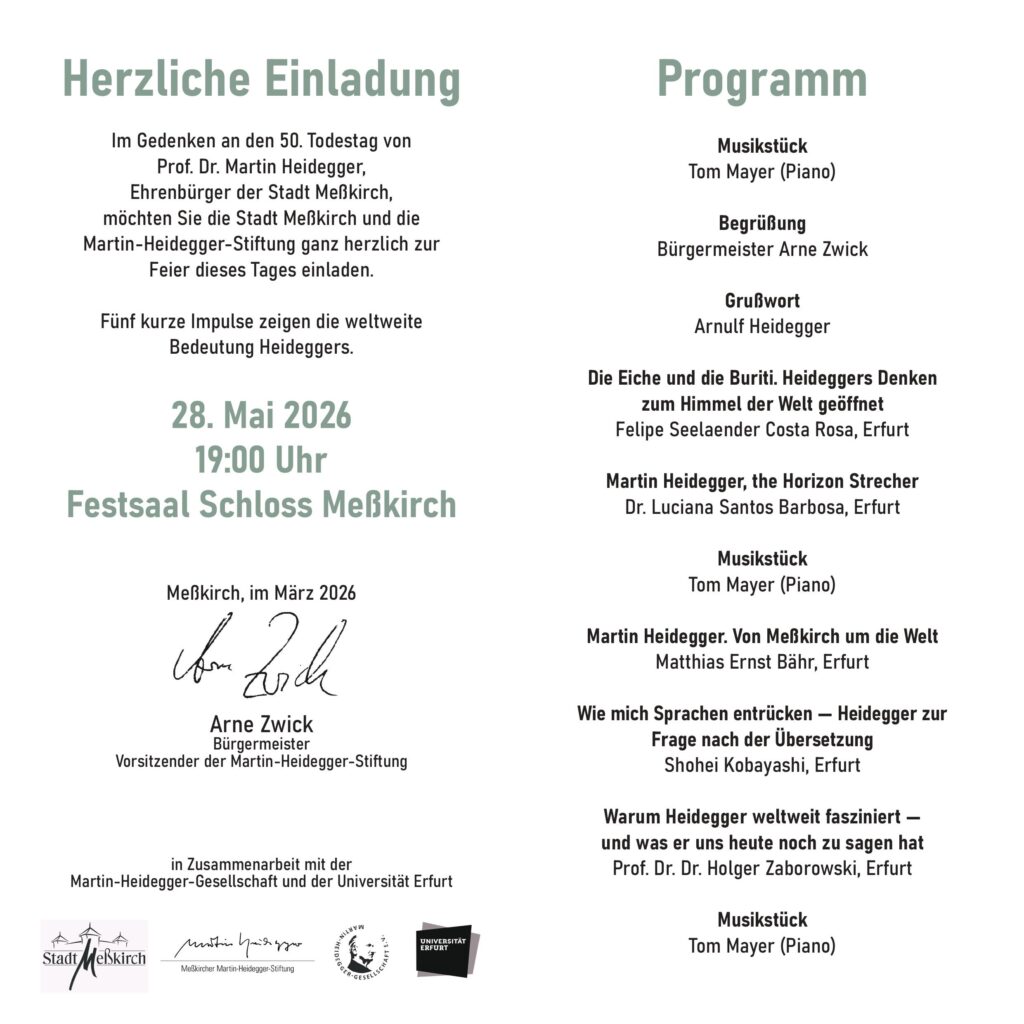 Einladung: Gedenkfeier zum 50. Todestag von Martin Heidegger Beitragsnavigation Nachruf von Holger Zaborowski auf Jürgen Habermas